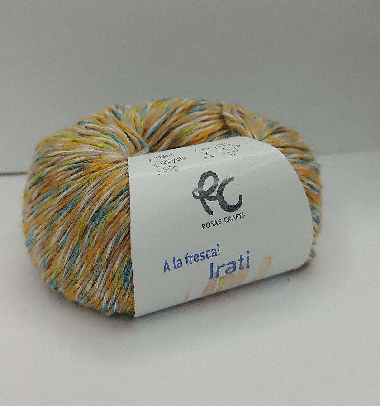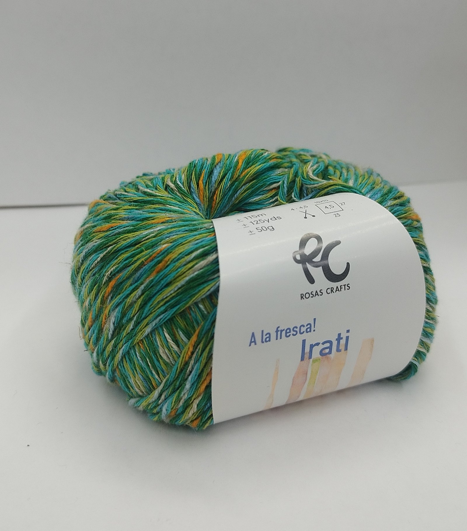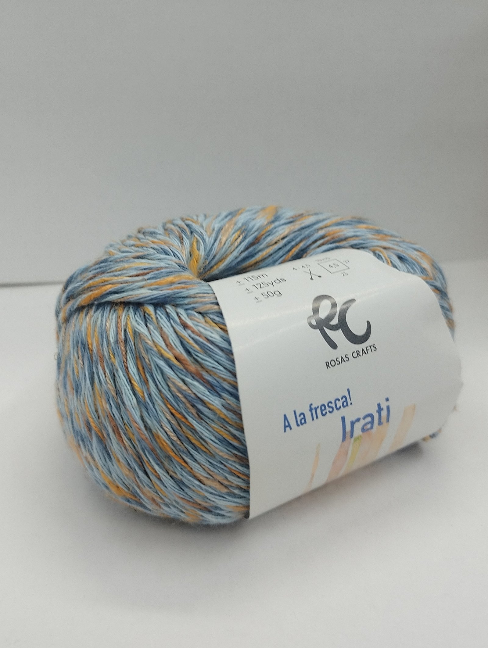 Hilo ideal para tejer, compuesto por 50% algodón, 25% viscosa, 10% lino y 15% poliéster. Con una longitud de 115m/125yds y un peso de 50g, es perfecto para agujas de 4/4.5mm. Parte de la colección A LA FRESCA!